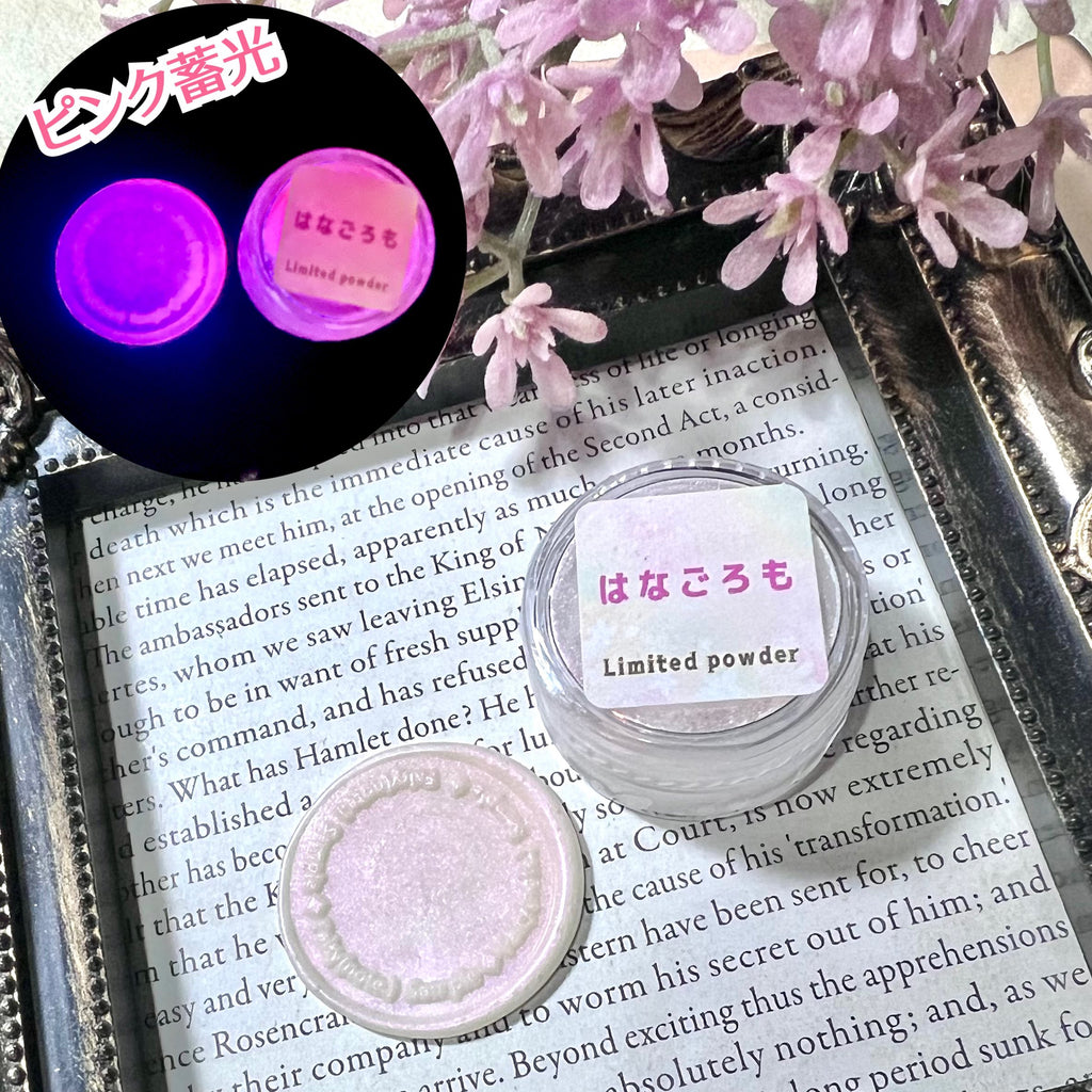 ピンク偏光のホワイト系パウダーで暗闇でピンクに光ります